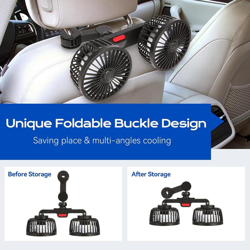 🌞Summer Sale 50% OFF🔥Dual Head USB Car Seat Fan, 3-Speed 360° Rotatable