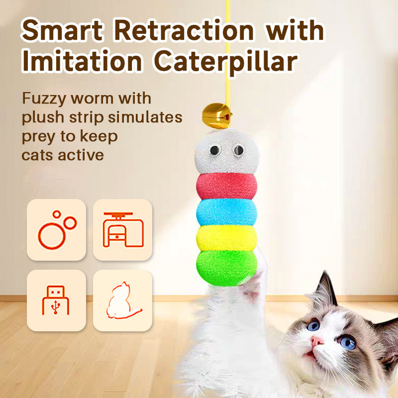 SMART RETRACTION WITH CATERPILLAR DESIGN – This rechargeable cat toy uses smart retraction to simulate the quick movements of natural prey, encouraging your cat to jump, chase, and swat. The toy features a fuzzy caterpillar-like body with a soft plush strip-like tail, combining multiple textures to trigger your cat’s hunting instinct.