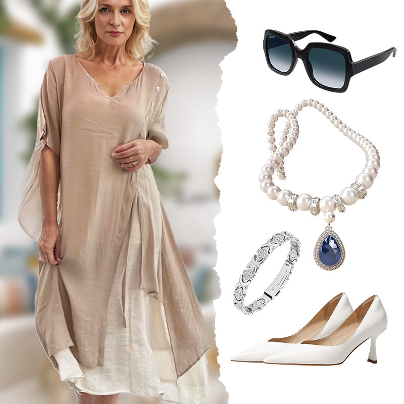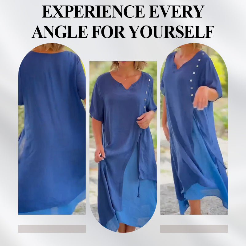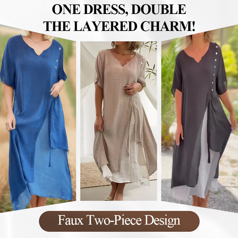 🔥2025 Hot Sale🔥Women’s Fake Two-Piece Flowy Midi Dress