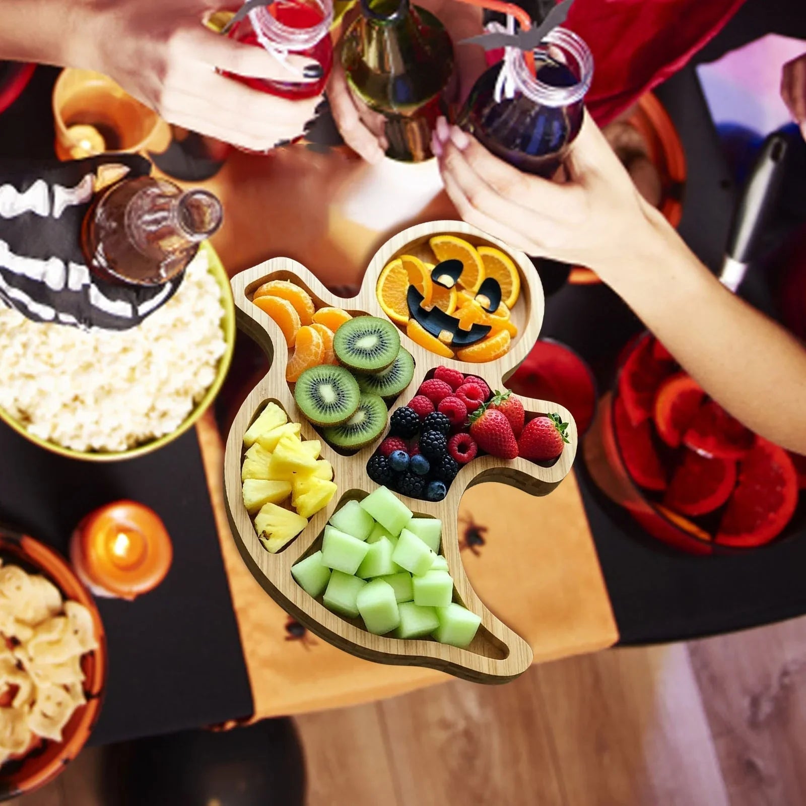- 1/2 * Halloween Ghost Shaped Bamboo Serving Tray