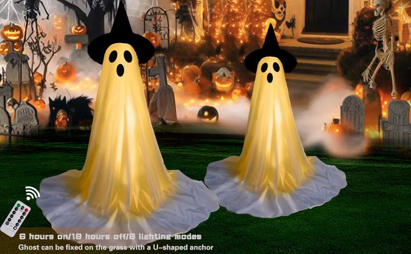 👻【Wide Application】These Halloween ghost decor are perfect for Halloween party, Halloween trick or treat events, Halloween proms, haunted houses and other Halloween themed occasions. Place Halloween ghost decorations in your yard, garden, patio, lawn, front door, or room, have a fun Halloween!