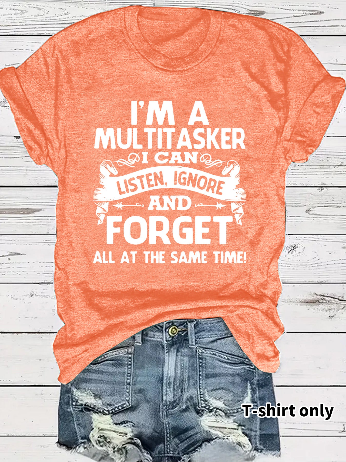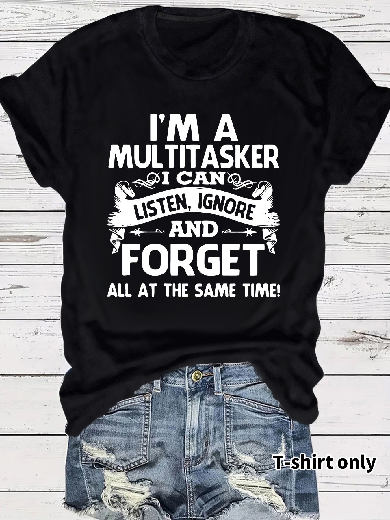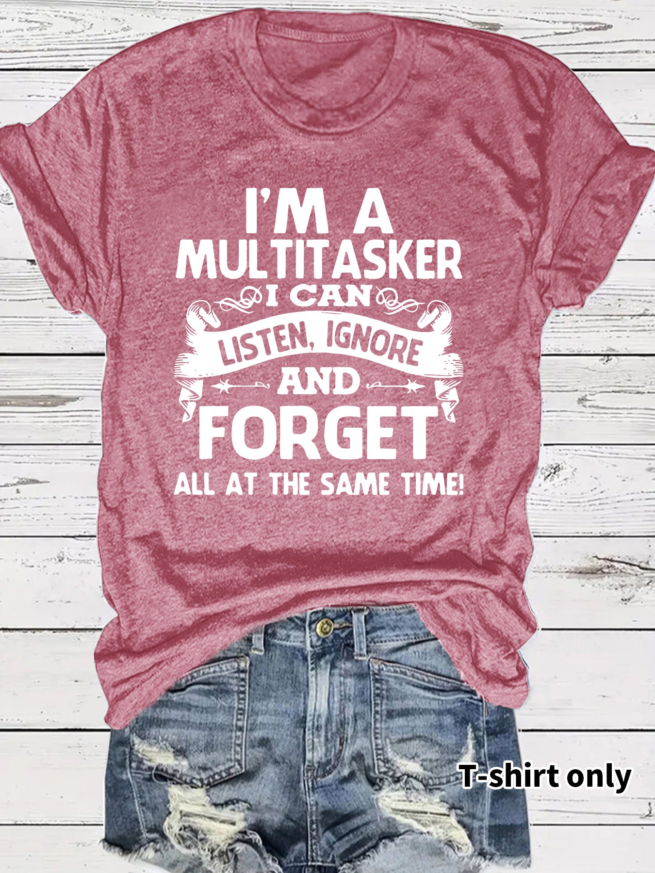👕 I'M A MULTITASKER ✨Women's Letter Print Round Neck Tee