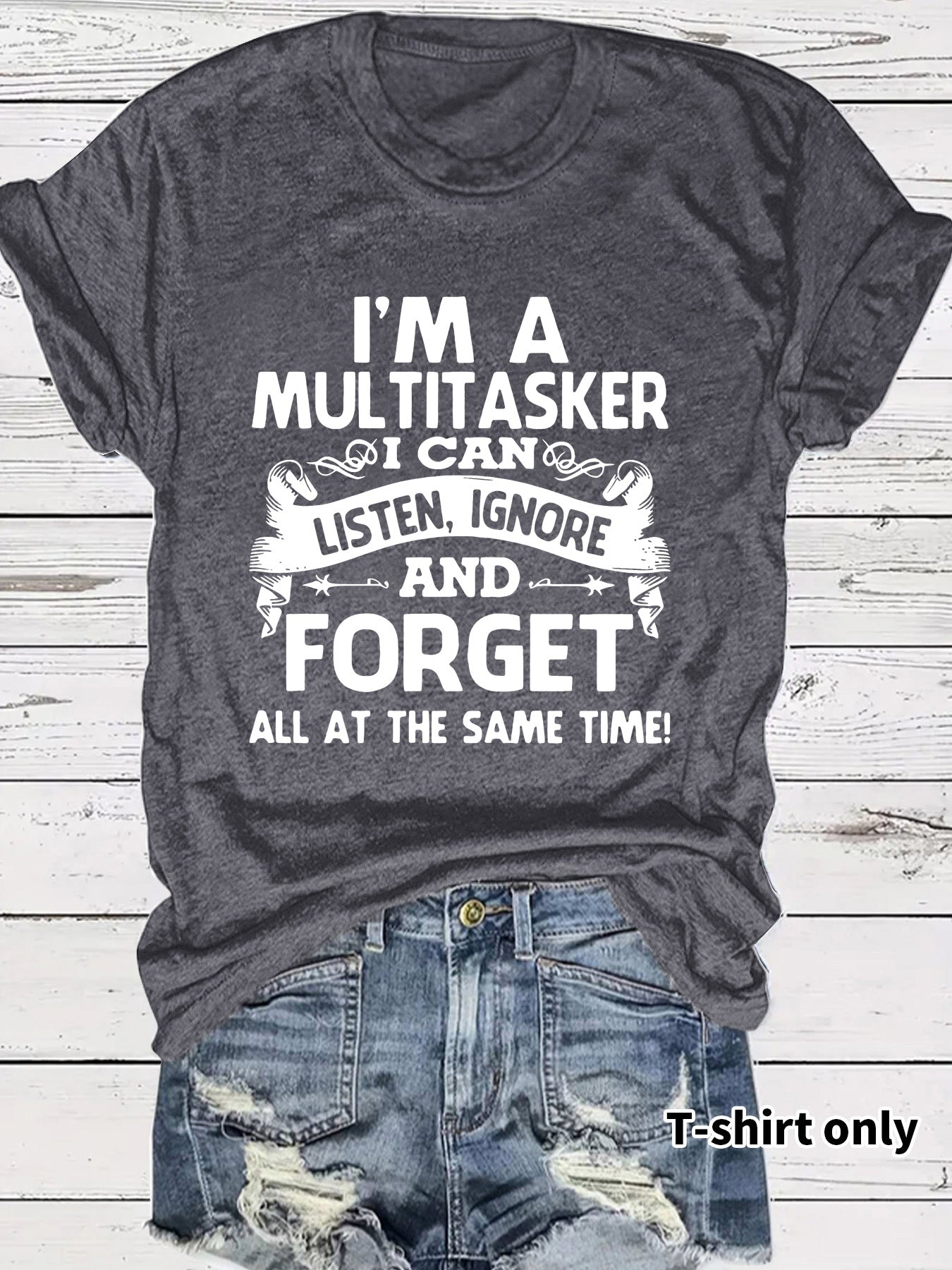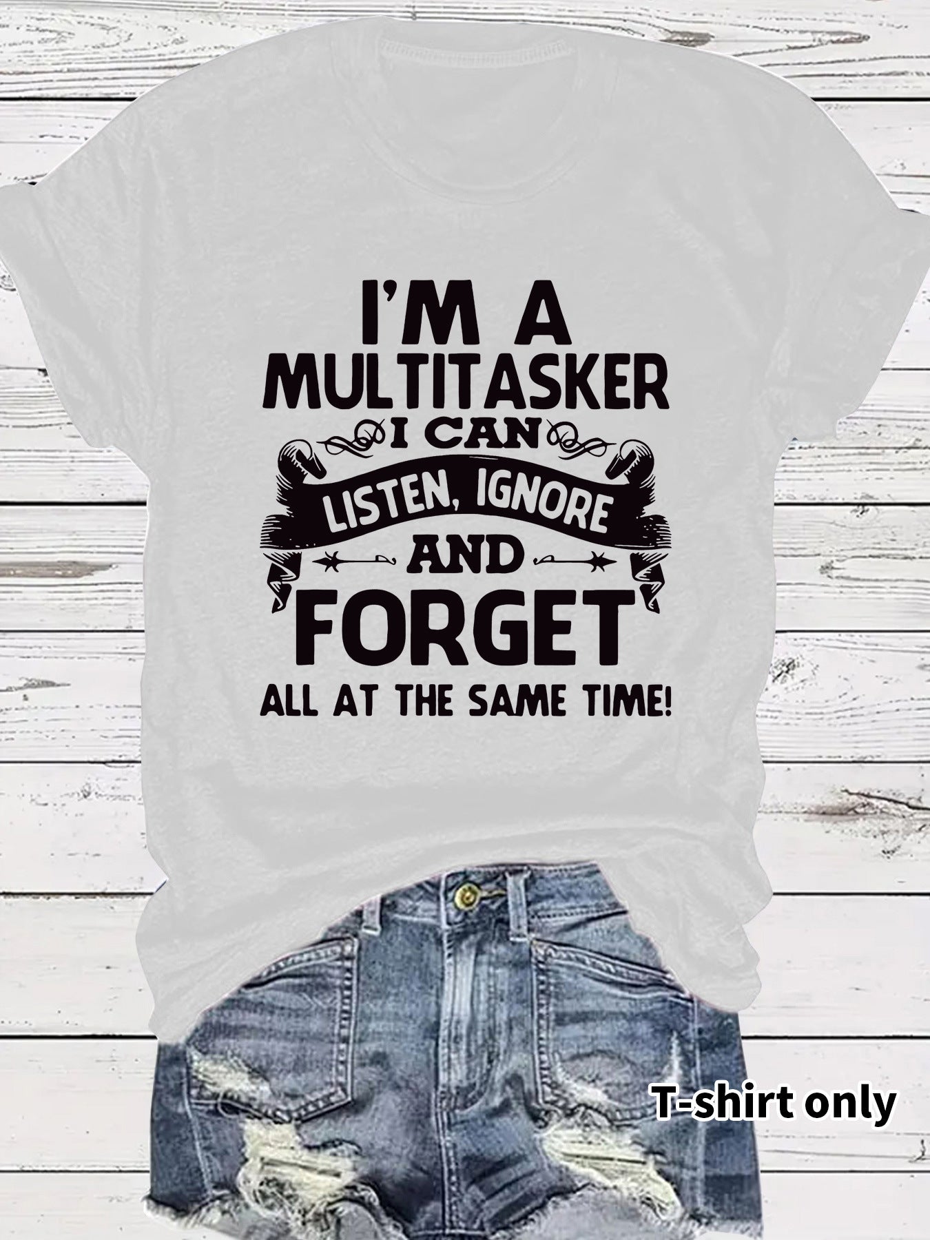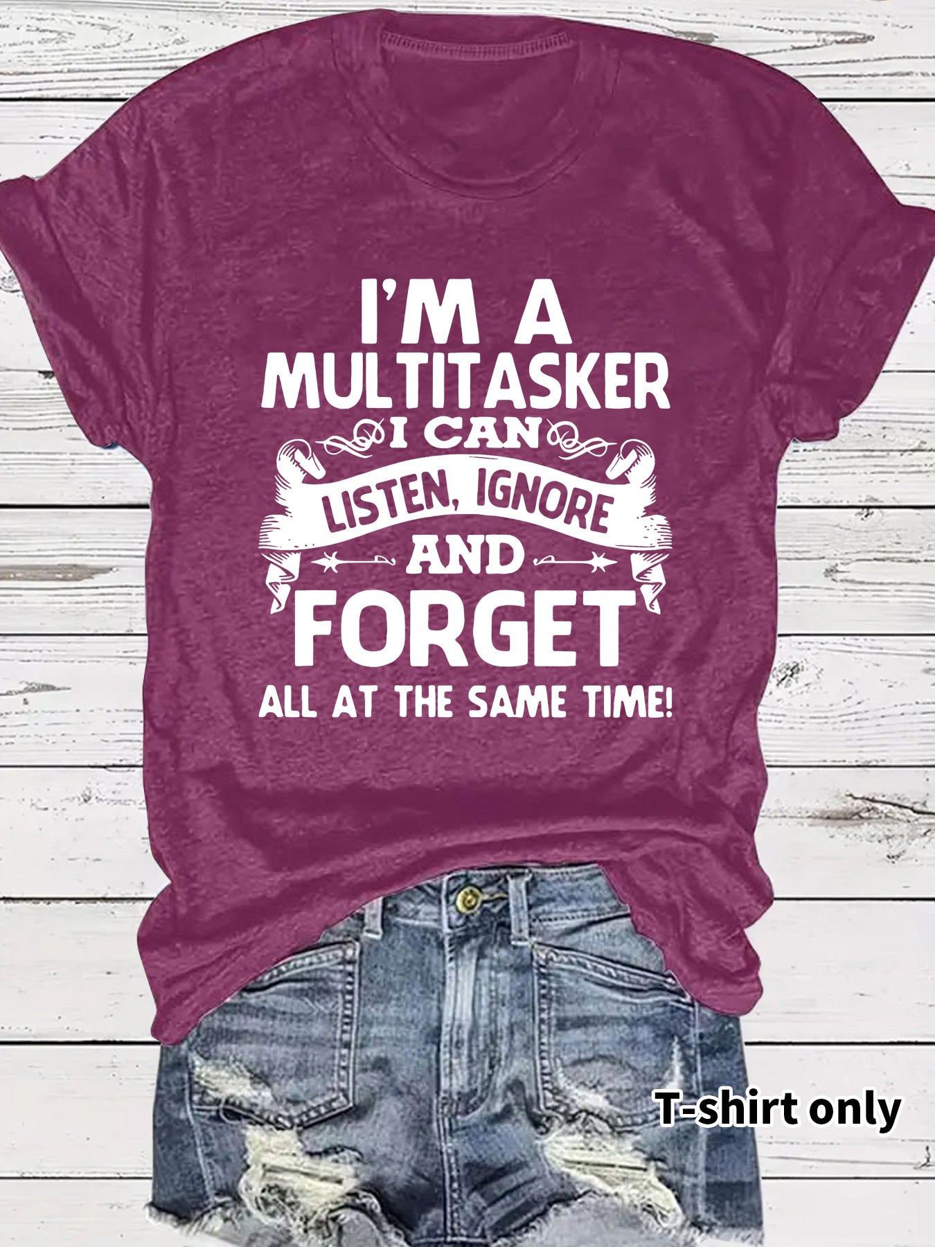 👕 I'M A MULTITASKER ✨Women's Letter Print Round Neck Tee