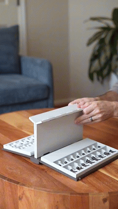 No complicated assembly needed. Simply unfold the book completely, and it transforms into a stable chessboard. The stand-up design not only saves table space but is also ergonomically designed, providing both players with a clear, comfortable view of the board and an optimal playing angle.