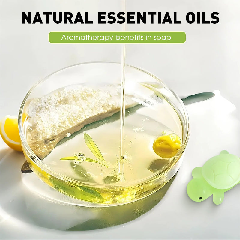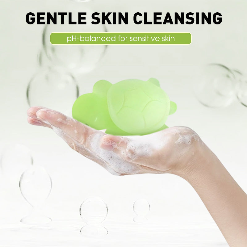 Cute Design🐢: This soap features an adorable turtle shape that captivates children's attention, transforming bath time into a fun experience and making washing a joy.
