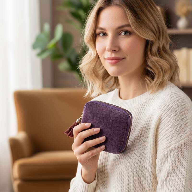 Crafted from high-quality polyester, the pouch is wear-resistant and provides a refined texture. It offers reliable protection for your valuables, ensuring long-lasting use and a consistently elegant appearance.