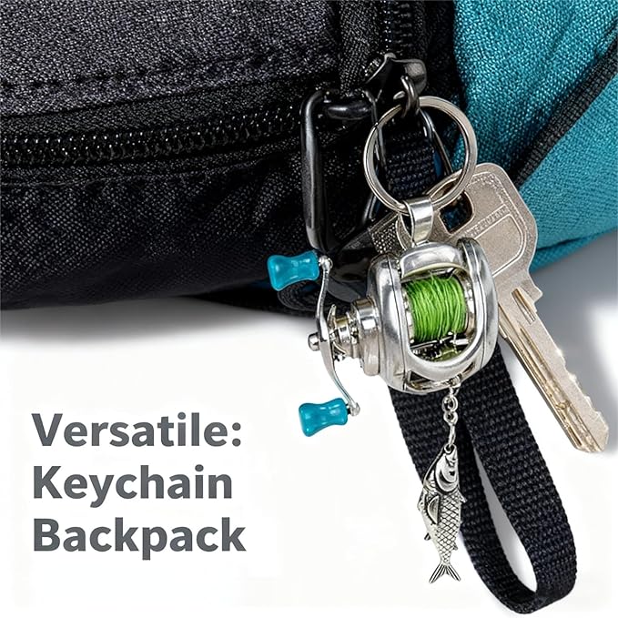 - Rotating Handle & Moving Details: This spinning reel pendant features an interactive rotating handle and movable line guide, adding a realistic touch and playful function that fishing enthusiasts will appreciate.