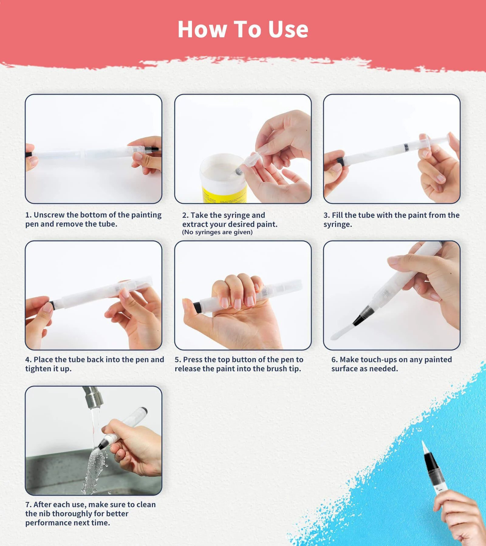 - Package Includes: 1* Fillable Touch Up Paint Pen Brush (No syringe provided)