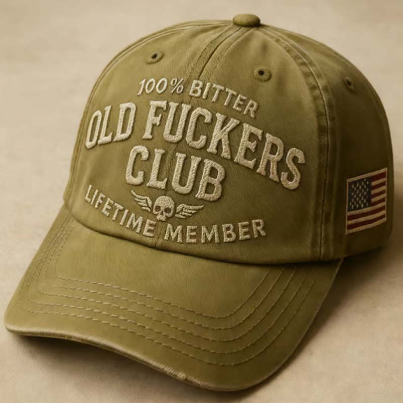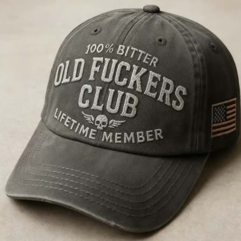 The high quality vintage cap that celebrates aging with bold humor and rugged style.