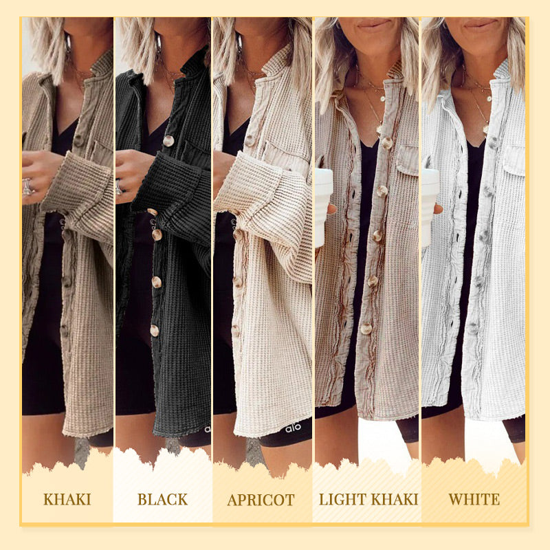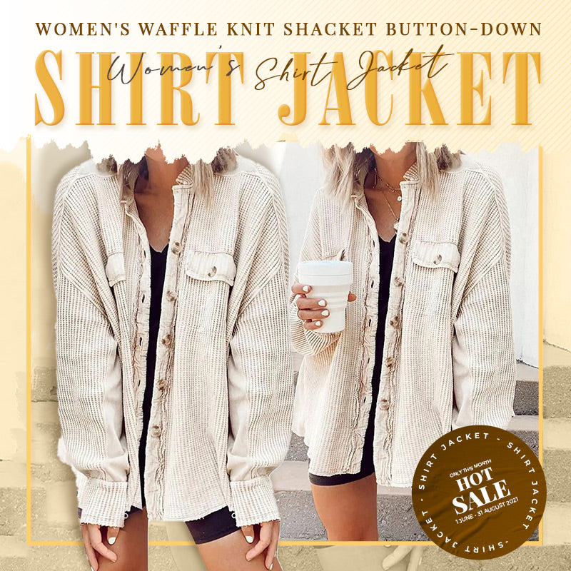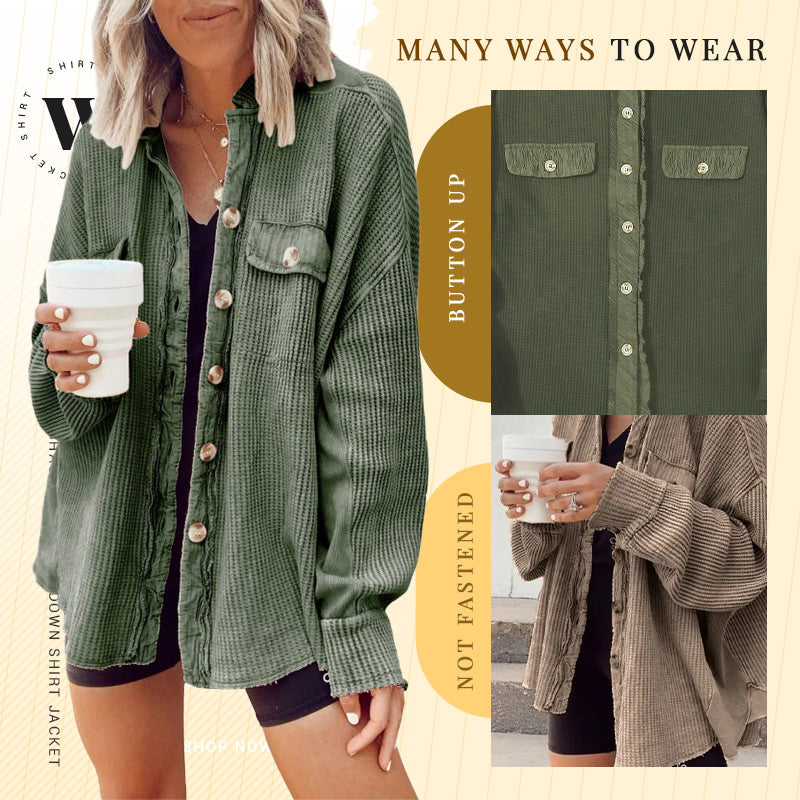 💕🧥Hot Sale 50%OFF🎀Women's Waffle Knit Shacket Button-Down Shirt Jacket